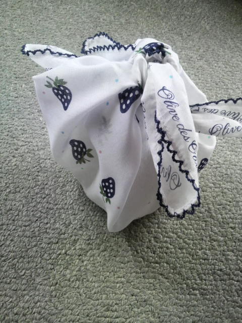 ハンカチにくるんで。